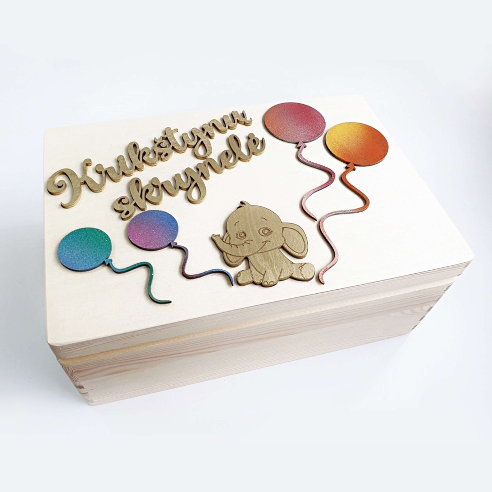Tai pats mieliausias vaikučio krikštynų ir vaikystės prisiminimų lobynas. Skrynelė, kurioje galite išsaugoti krikštynų, pirmojo gimtadienio, pirmosios komunijos ir daug kitų pirmųjų kartų atributiką.