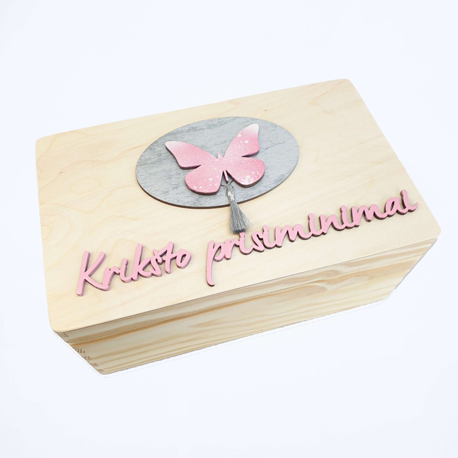 Tai pats mieliausias vaikučio krikštynų ir vaikystės prisiminimų lobynas. Skrynelė, kurioje galite išsaugoti krikštynų, pirmojo gimtadienio, pirmosios komunijos ir daug kitų pirmųjų kartų atributiką.
