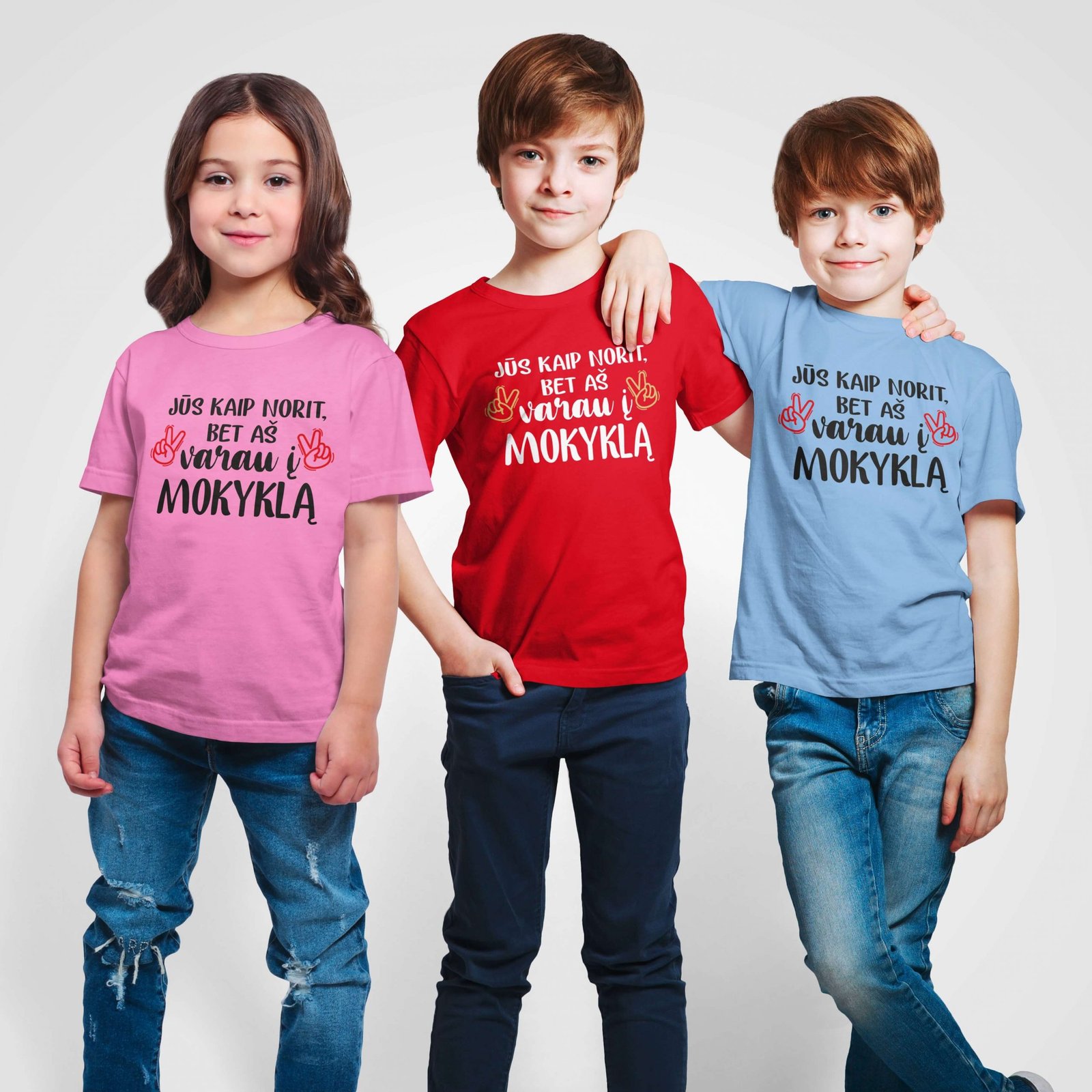 MARŠKINĖLIAI VAIKAMS „JŪS KAIP NORIT BET AŠ VARAU Į MOKYKLĄ“