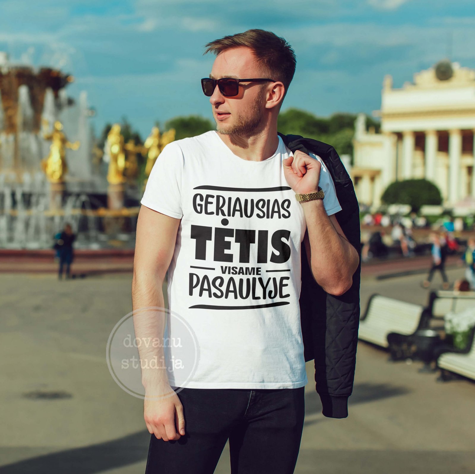 Pradžia ŠVENTĖMS TĖČIO DIENA 2025 MARŠKINĖLIAI TĖČIUI MARŠKINĖLIAI „VISAME PASAULYJE“