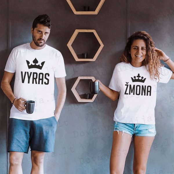 MARŠKINĖLIAI POROMS „VYRAS – ŽMONA“ SU KARŪNOMIS